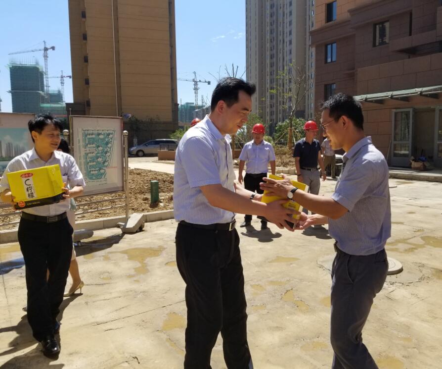 7月25日,建設(shè)集團(tuán)董事長(zhǎng)、黨委副書記周君、副總經(jīng)理張鋼平一行冒著近四十度的高溫前往溧水天岳城項(xiàng)目為員工送去清涼和關(guān)愛。周君董事長(zhǎng)代表集團(tuán)黨委、工會(huì)為員工們贈(zèng)送了防暑降溫藥品和飲料等清涼物品。慰問(wèn)活動(dòng)結(jié)束后,周董事長(zhǎng)聽取了項(xiàng)目進(jìn)展情況匯報(bào) 并強(qiáng)調(diào),寧鎮(zhèn)區(qū)域當(dāng)前的工作重點(diǎn)一是要圍繞集團(tuán)下達(dá)的2017年經(jīng)營(yíng)指標(biāo),做好房屋交付、清盤等收尾工作;二是要持續(xù)強(qiáng)化安全生產(chǎn)意識(shí),徹底排查安全隱患,狠抓安全生產(chǎn)責(zé)任落實(shí),確保各項(xiàng)工作穩(wěn)妥推進(jìn);三是各級(jí)領(lǐng)導(dǎo)干部和員工要有勇于擔(dān)當(dāng)?shù)木瘢龅绞赝劣胸?zé)、守土盡責(zé)。